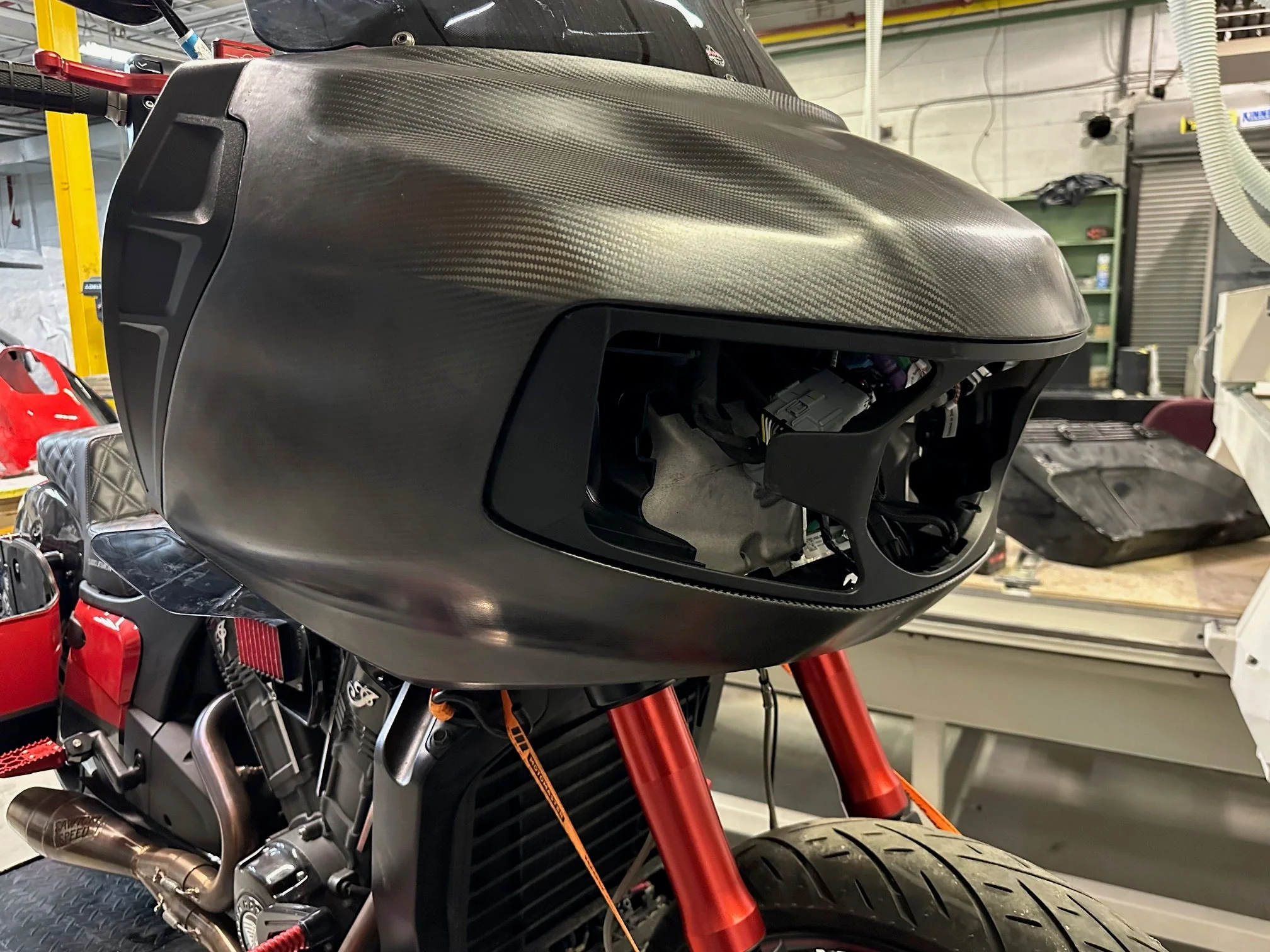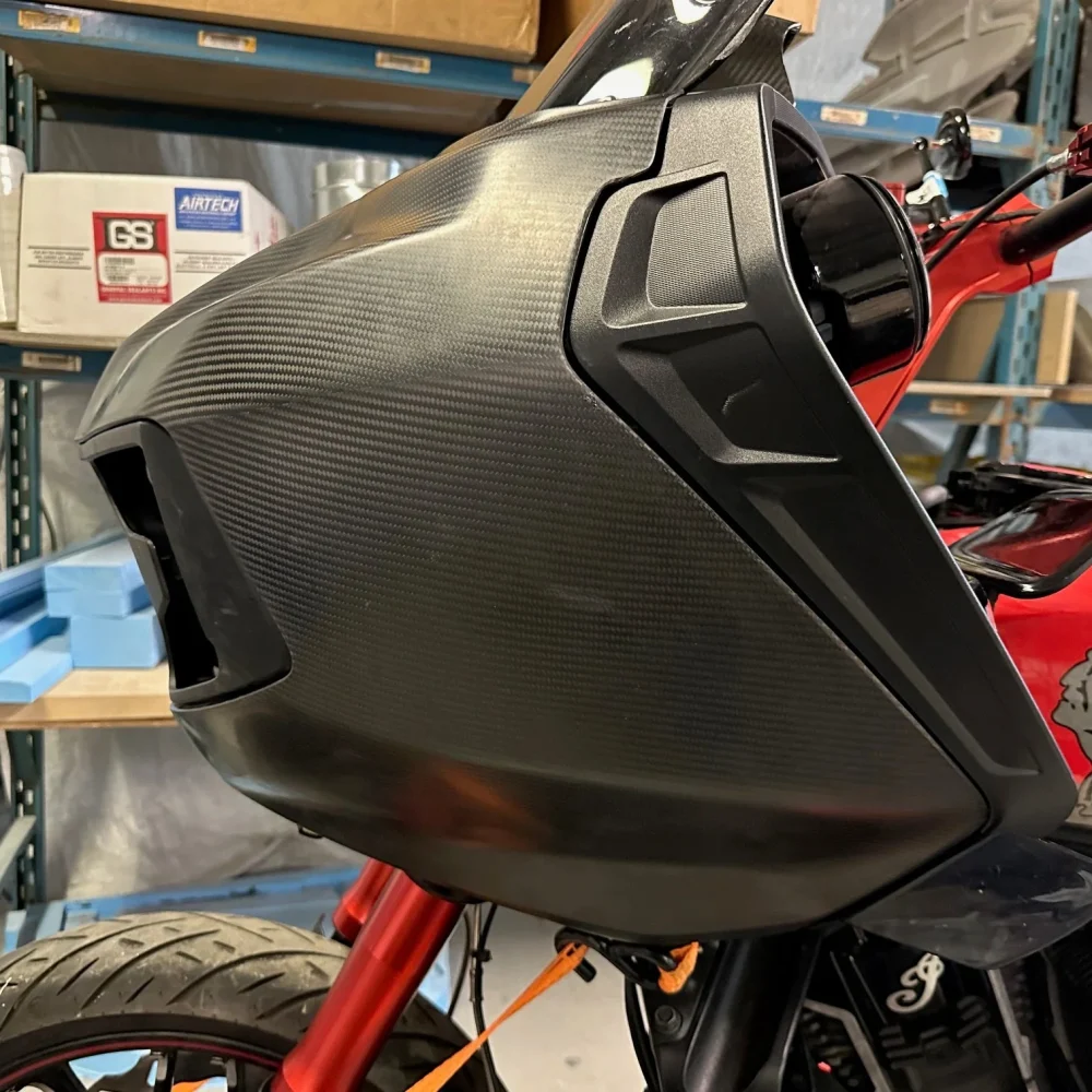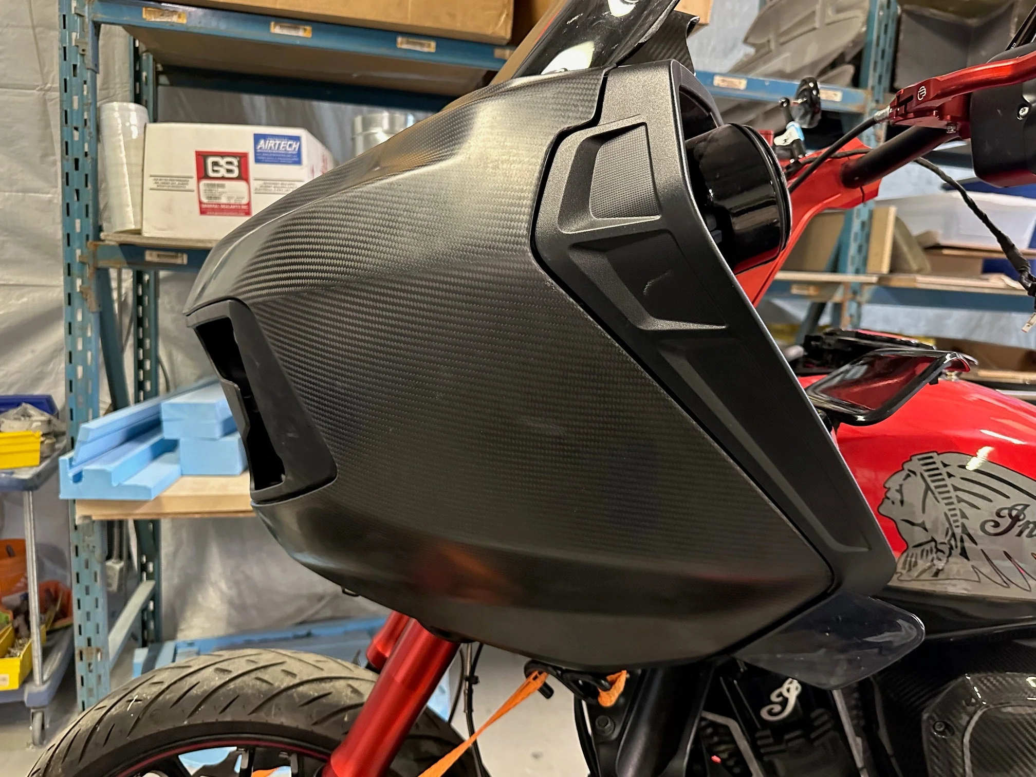 Paten Pending Indian Challenger / Pursuit fairing made to Indiana factory spec with our own custom twist, this fairing is light weight and made from 100% carbon fiber.